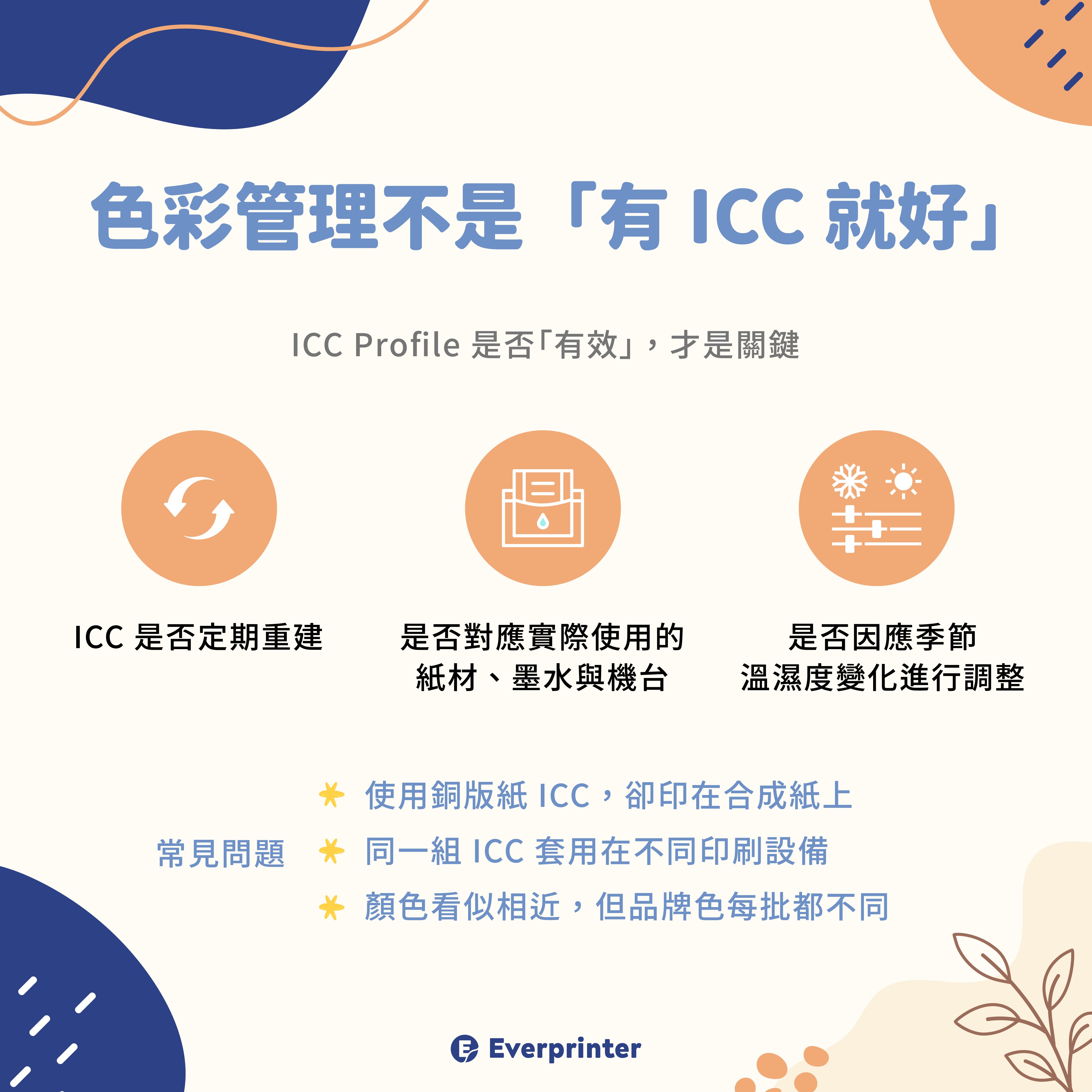 許多印刷廠雖有 ICC Profile,但真正影響結果的是: