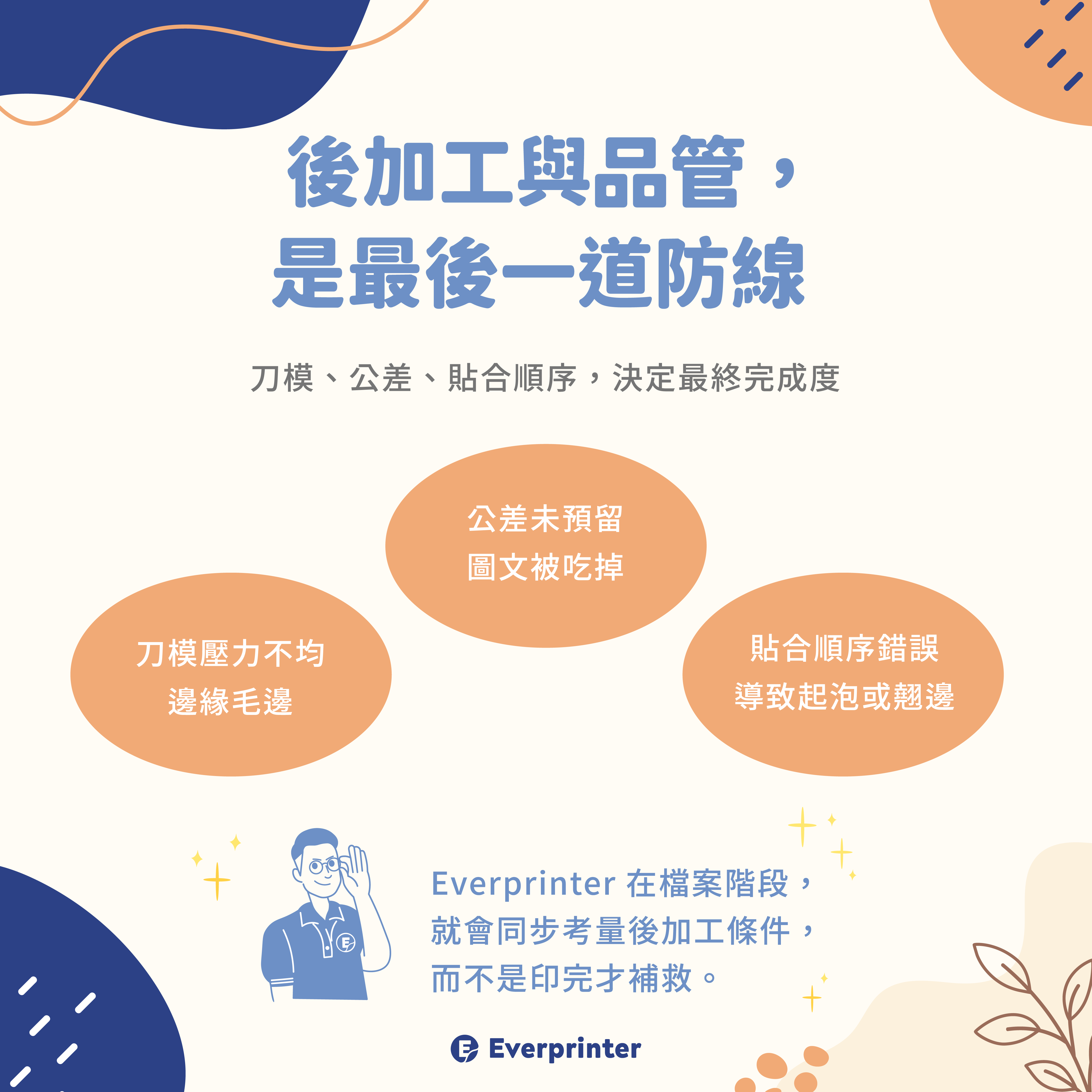 Everprinter 貼紙先生在檔案階段即同步考量後加工物理條件,確保成品不只「印得漂亮」,更要「好貼、耐用」。