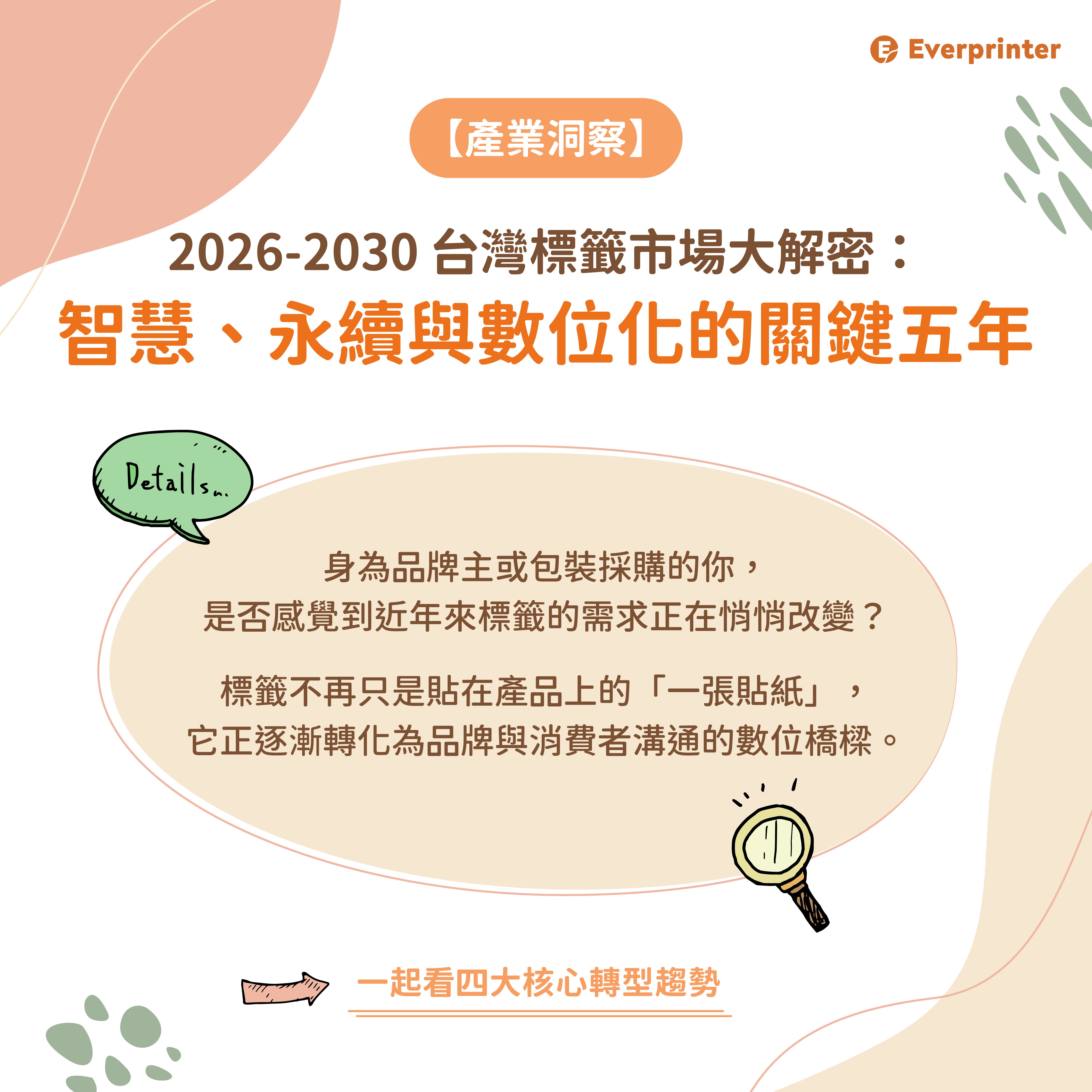 標籤不再只是貼在產品上的「一張貼紙」,它正逐漸轉化為品牌與消費者溝通的「數位橋樑」。隨著 2026 年的到來,貼紙先生(Everprinter)帶大家一起解讀:未來五年,台灣標籤產業的四大核心轉型趨勢,以及品牌該如何在這波浪潮中搶佔先機。