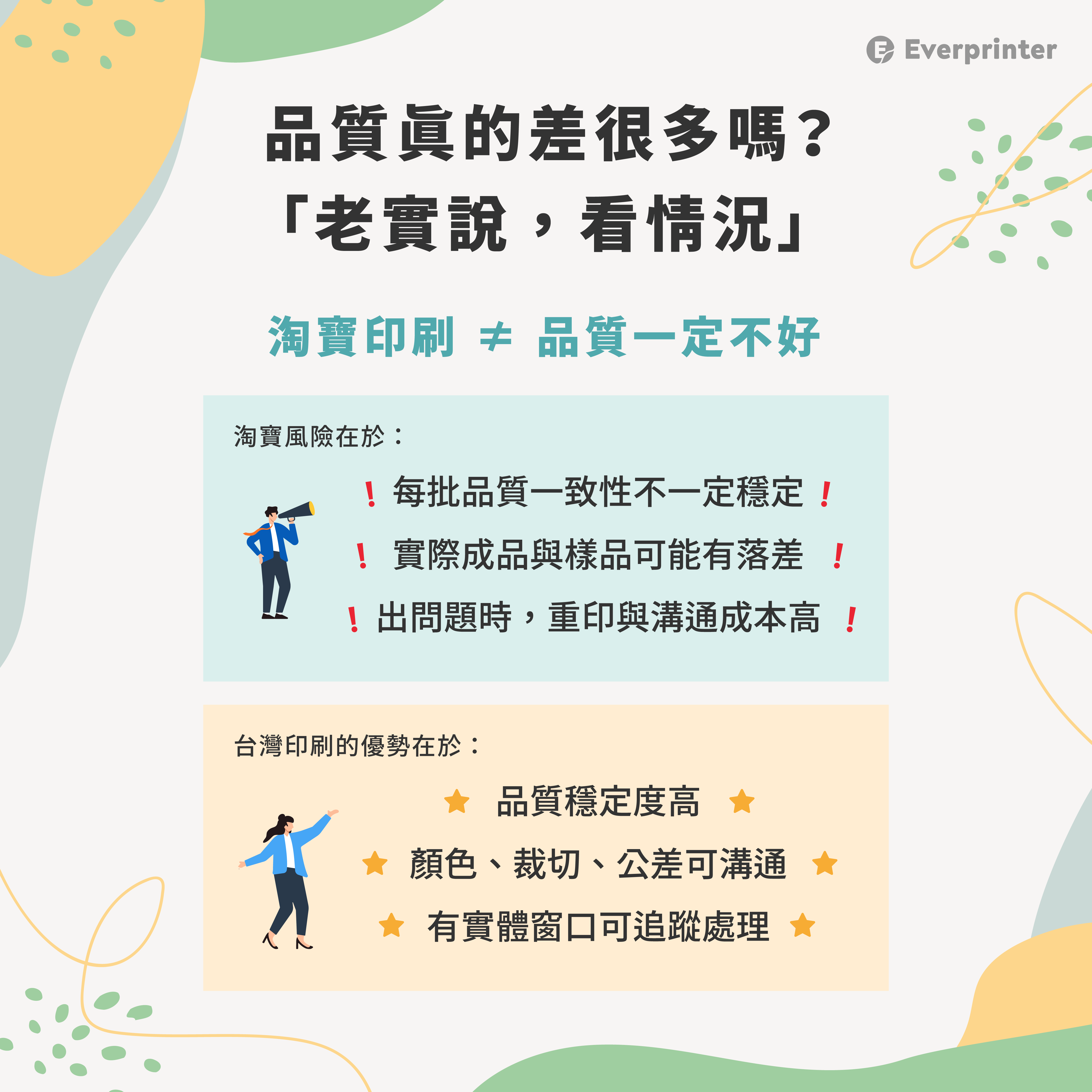因為有些情況下,淘寶印刷真的很適合;但也有一些狀況,差別不是幾百塊,而是後續要不要重來一次。