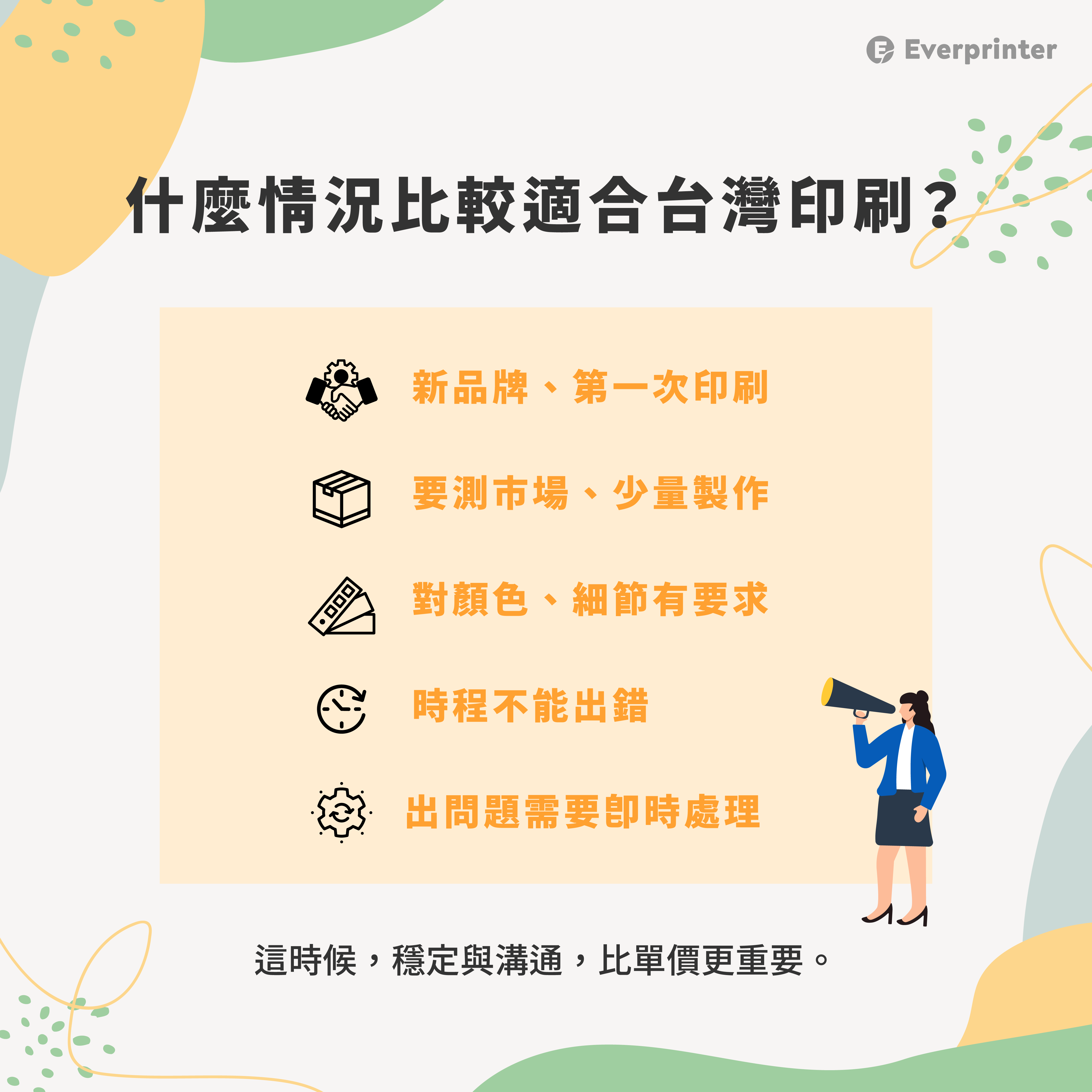 📌 只要「時間」是關鍵,台灣印刷的優勢會非常明顯。