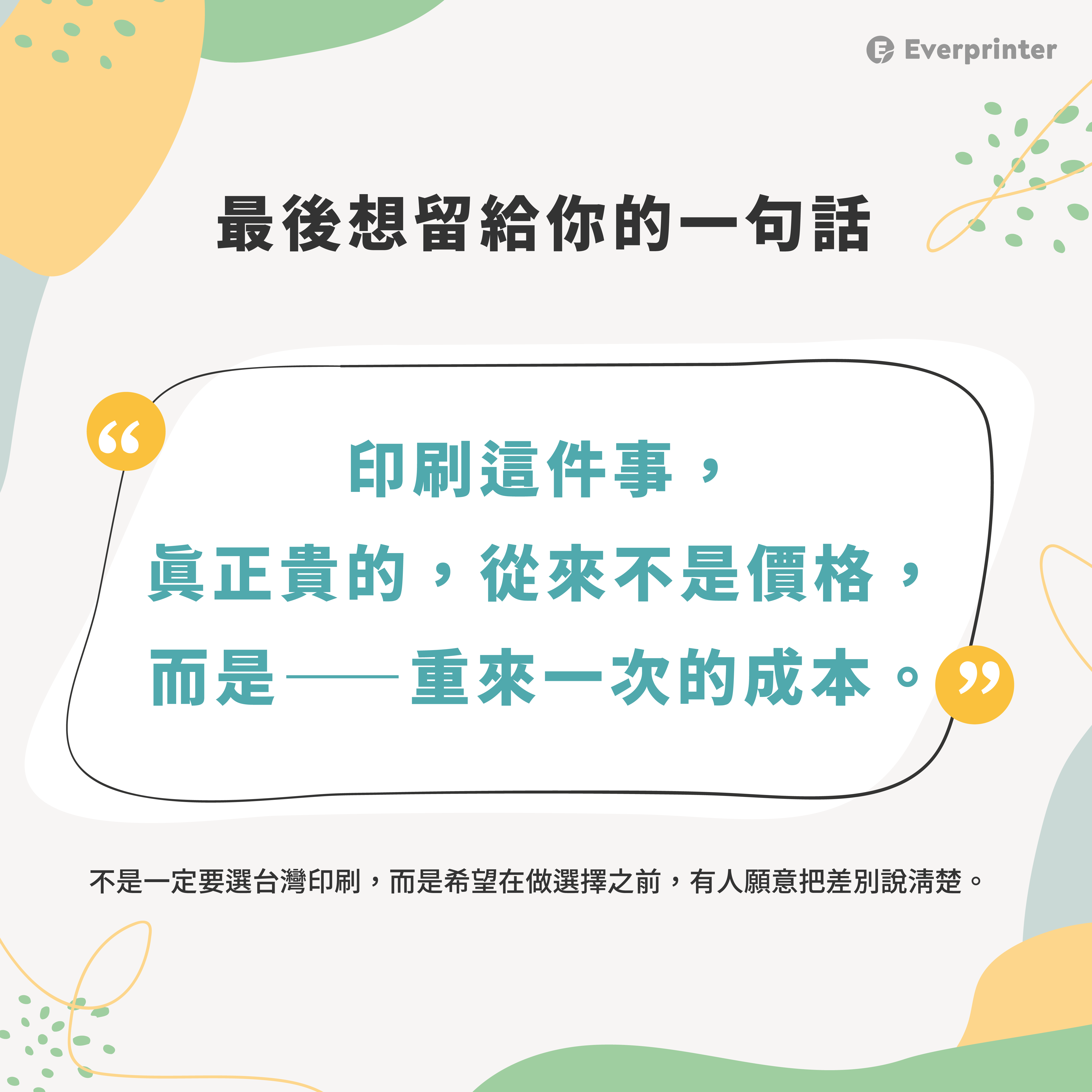 「你這一次印刷,會不會留下不好的經驗。」