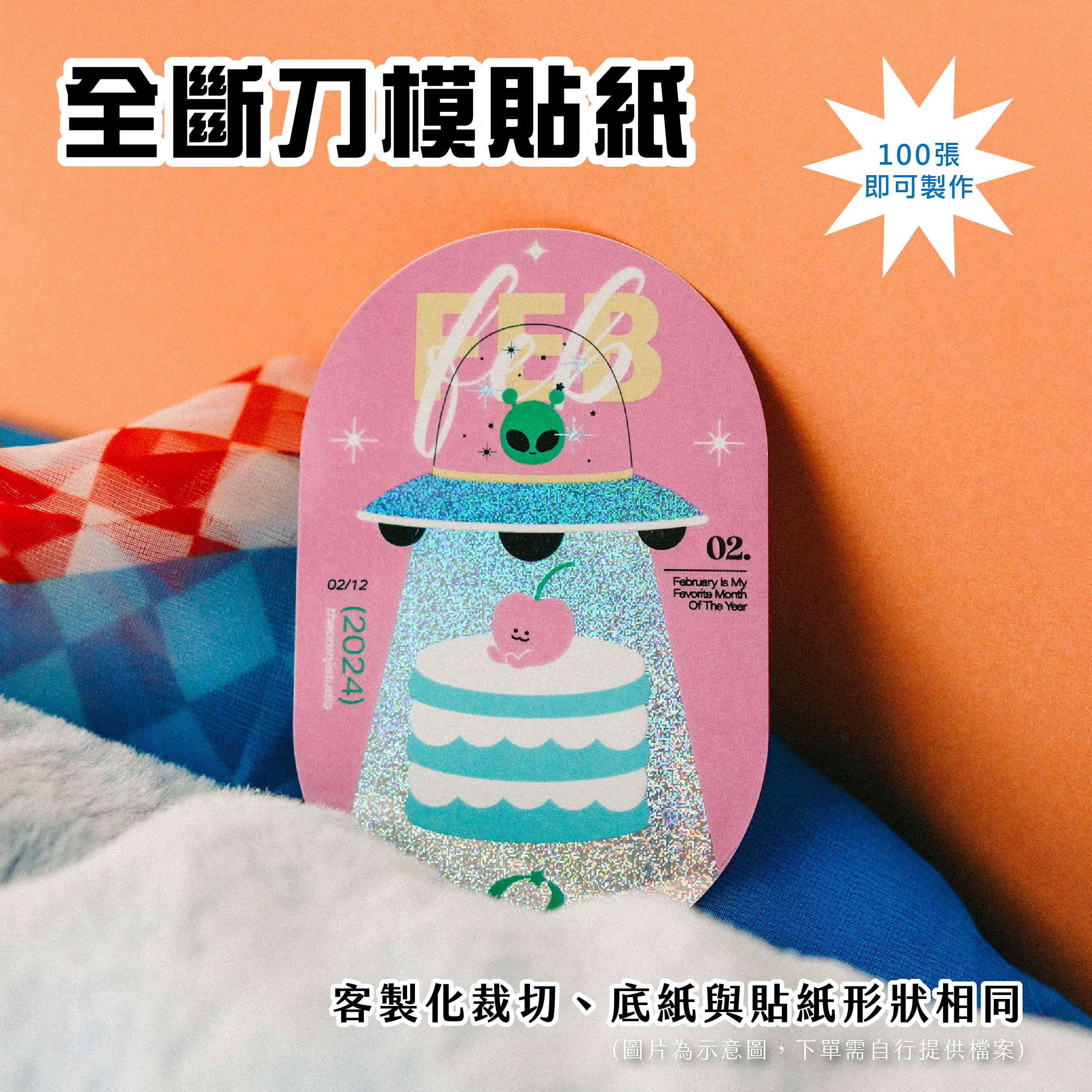 可線上編輯文創產業最受歡迎的產品之一,又稱「造型刀模貼紙」,每張貼紙皆為獨立裁切,依刀線或圖案邊緣精準裁切,貼紙與底紙形狀一致,整體視覺完整俐落。採用台灣自有工廠製作,品質嚴格把關,適合用於文創商品、品牌禮品、活動贈品與行李箱貼紙等應用。提供銅版紙、模造紙、透明合成紙、珠光紙、防水合成紙、美術紙、泰維克、雷射紙、牛皮紙等多種紙材選擇,並支援變動資料、底紙印刷、局部上光、燙金/燙銀等後加工服務。每款圖案最低 100 張即可訂購,印量越多單價越優惠;若需 OPP 袋包裝服務,請至多功能商品-包裝服務加購。 *年前最後出貨日為2/9,目前下單皆需於年後才能完成!*