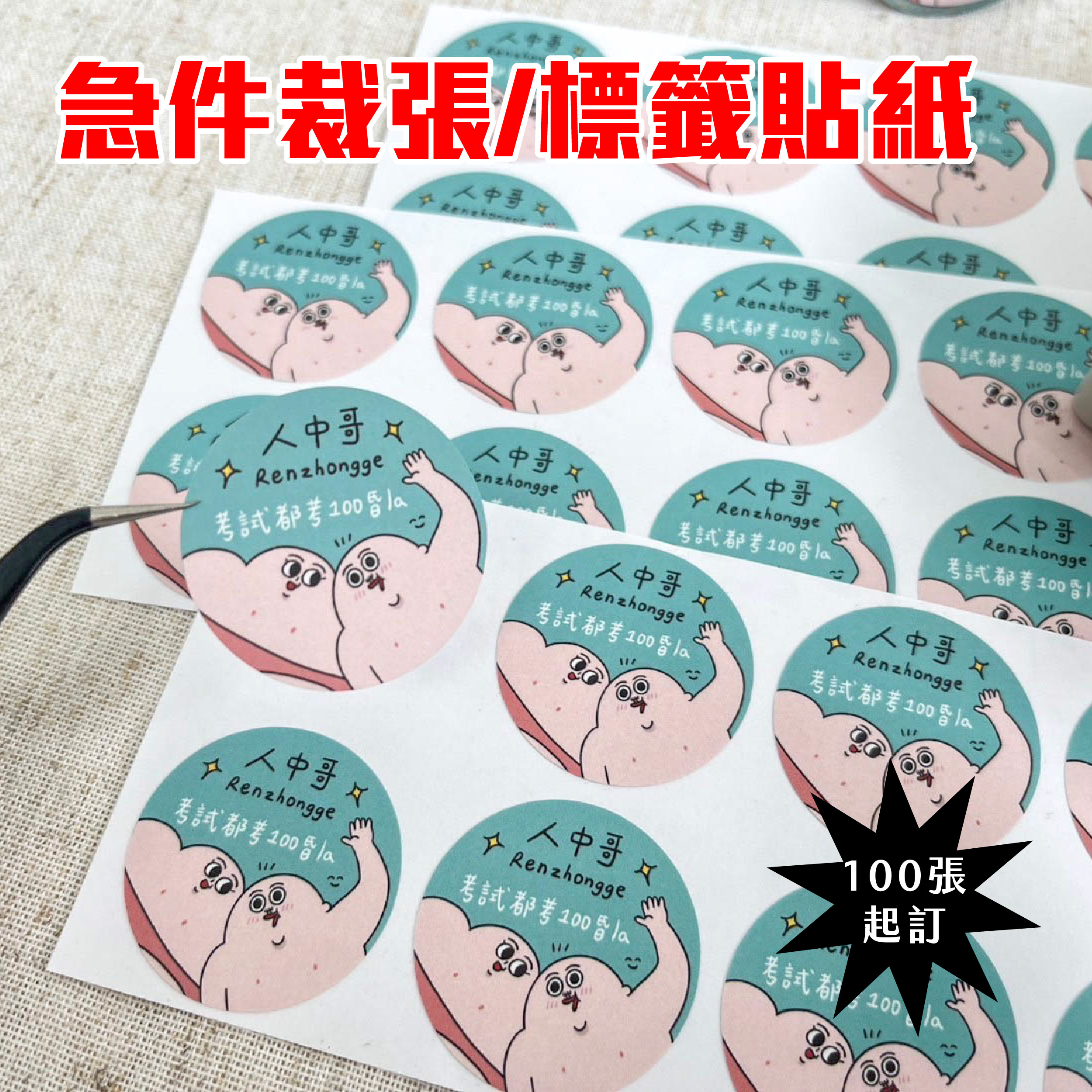 急件裁張貼紙,一大張裡頭有幾小張,免開版、免刀模,24小時出貨(不包含例假日),即需即印。
