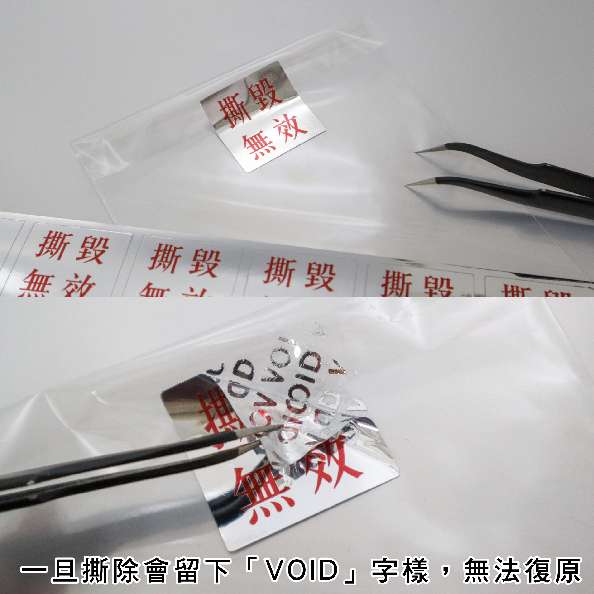 若有人試圖移除,貼紙將顯示"VOID"字樣,無法復原。