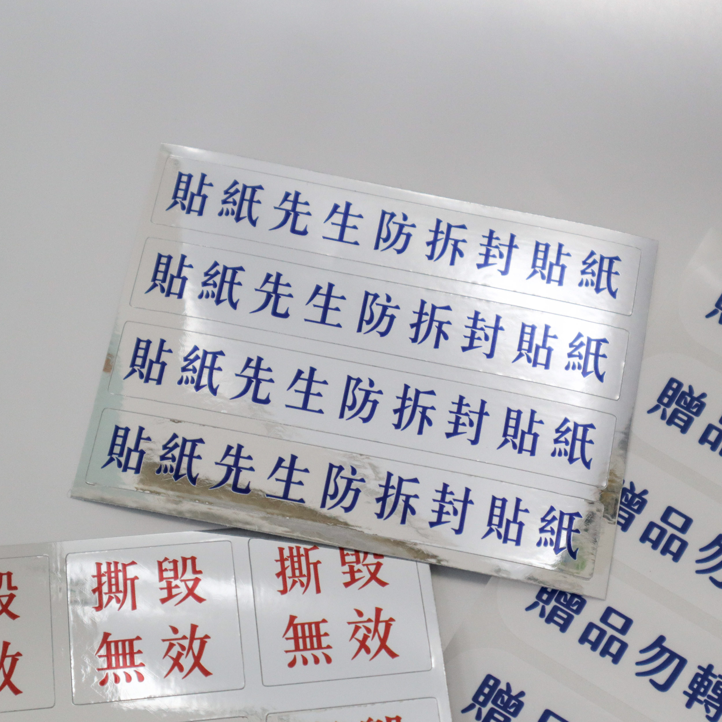 我們提供尺寸、顏色、印刷內容等多項客製化服務,適用於企業品牌保護、產品防偽等多種應用。如有問題,請聯繫我們諮詢客製方案!